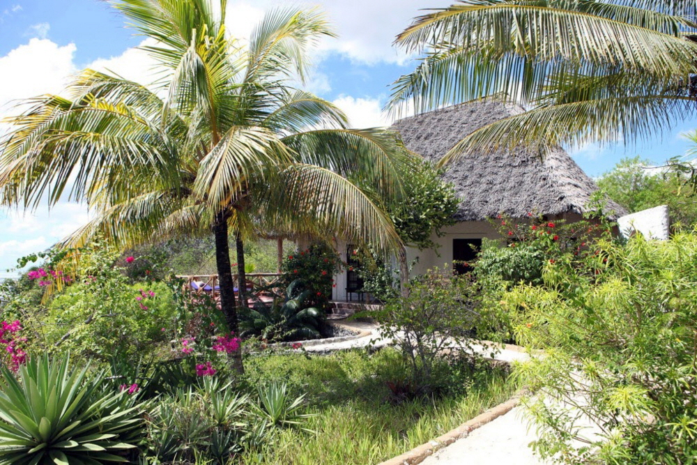 hen Ozean. Es gibt 11 Sea View Cottages mit Terrassen die Meerblick haben. Handgemachte Teakholzmöbel, Zanzibar- Holzbetten, Deckenventilatoren und romantische Moskitonetze runden das Bild ab. Vier der Cottages sind als Familienzimmer ausgelegt und haben im oberen Stock ein 2. Bett mit Waschbecken. In der unteren Etage gibt es Klimaanlage und ein gemeinsames Bad. Im Garten sind noch drei kleinere Zimmer die ebenfalls Klimaanlage und Duschbäder haben. Für Honeymooner oder wenn Sie sich etwas Besonderes gönnen wollen gibt es die beiden Villen Kuzi und Kaskazi, die auf einem Hügel abseits der anderen Zimmer liegen. Hier gibt es einen Privatpool, grosse Wohnzimmer die auf eine Terrasse mit Meerblick übergehen. Auf der Dachterrasse gibt es eine Badewanne und ein zusätzliches Bett mit Moskitonetzen, so das Sie den Sternenhimmel die ganze Nacht geniessen können. Ein Traumplatz in Sansibar. Es gibt jeweils 3 Etagen und 2 Badezimmer in den Suiten, eine Klimanalage und Ventilatoren. Ausflüge werden gerne organisiert: Stone Town, Spice Tour, Jozani Wald. Das Restaurant serviert Seafood und sansibarische Küche, auf Wunsch auch vegetarisch.